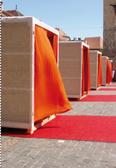 La mission de cette scénographie était d'articuler, sur cette place publique, des sous-espaces, permettant plusieurs niveaux de représentations, à des échelles différentes.