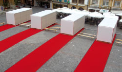 La scénographie des Jeux du Castrum en 2007 a été élaborée autour du concept de "salon à ciel ouvert". Sur cinq bandes de moquettes rouges de 3m x 30m, étaient disposés cinq boîtes lumineuses identiques, appelées "salons portatifs" de 6m sur 2m50.