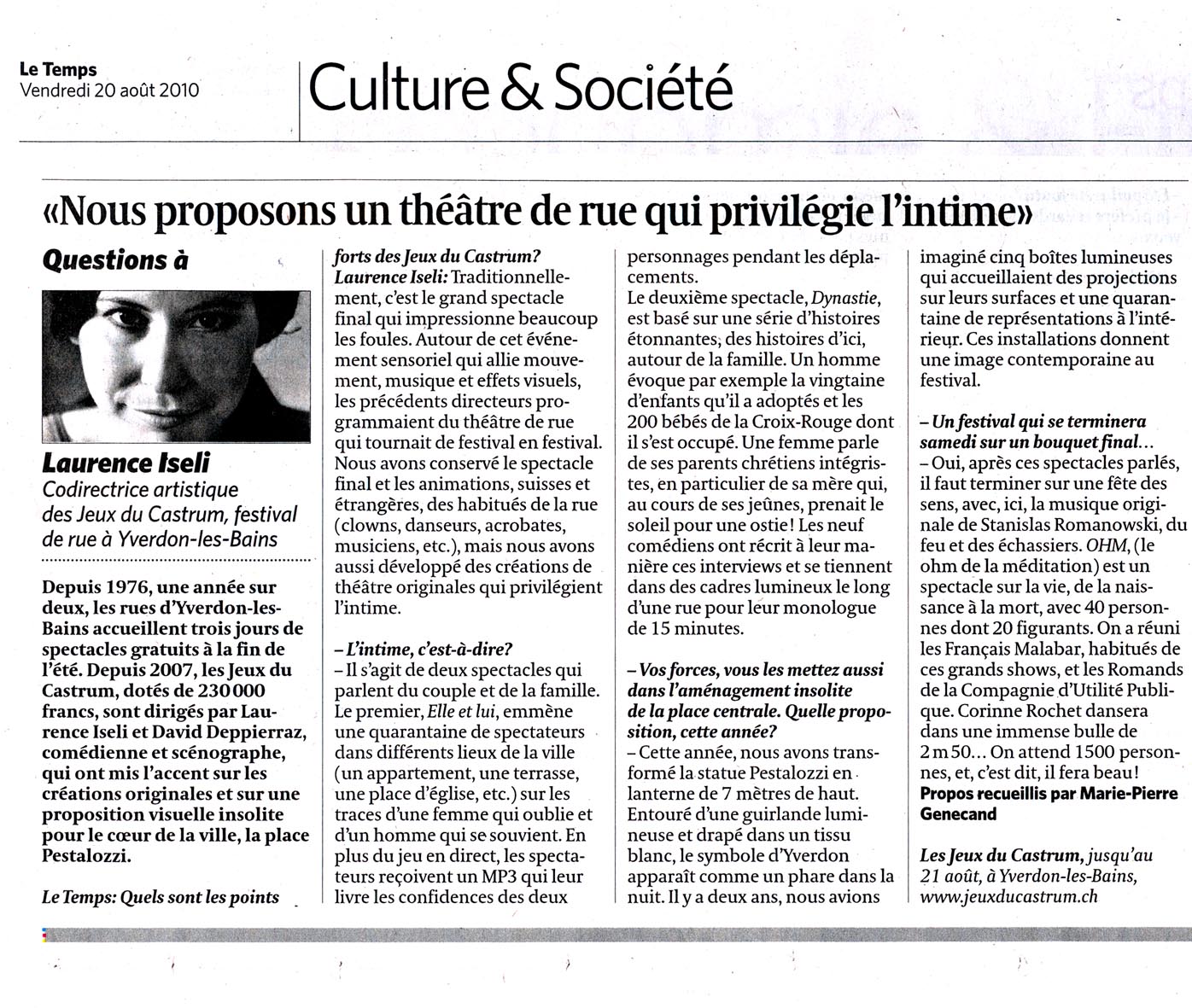Créé lors de l’édition 2010 du Festival des Jeux du Castrum, coproduit par le Théâtre l’Echandole, ce spectacle a été joué plus de 50 fois avec un taux de remplissage avoisinant les 90%. Ce spectacle a été, notamment, l'un des coups de coeur de l'édition 2012 du Festival de la Cité, Lausanne.