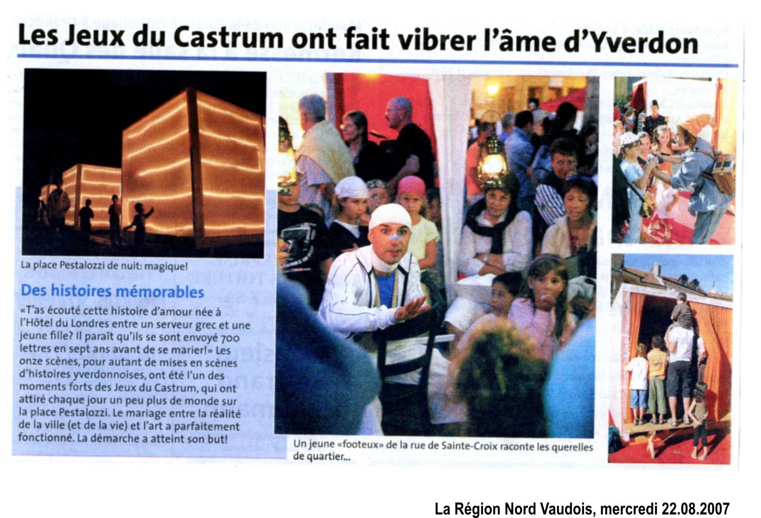 Ce spectacle a été créé à Yverdon-les-Bains mais, sur demande, il peut être adapté à n’importe quelle ville ou région en employant les artistes locaux sous la supervision de Dahlia Production.